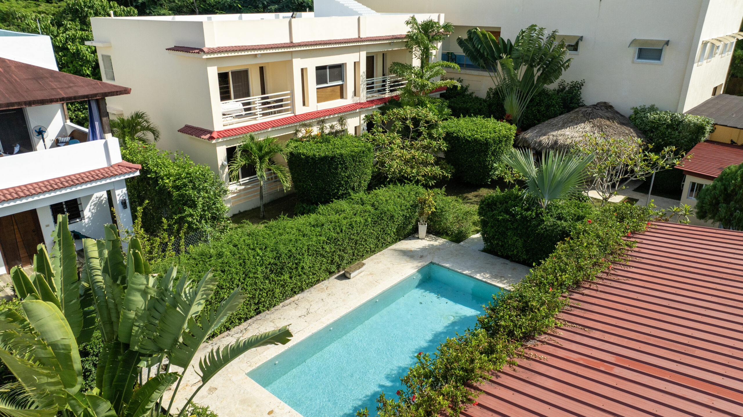 This large and fully equipped property is ready to operate and offers you the opportunity to start your business today. It offers a two-level building with 4 apartments, all fully furnished and equipped, ocean views from the roof terrace, pool area, gazebo, cisterns, private parking, generator, cable TV, Internet and air conditioners. in all units. It is located just a short walk from the beach and the city center, and a 10-minute drive from the Puerto Plata airport. You can get a great income from renting the units.