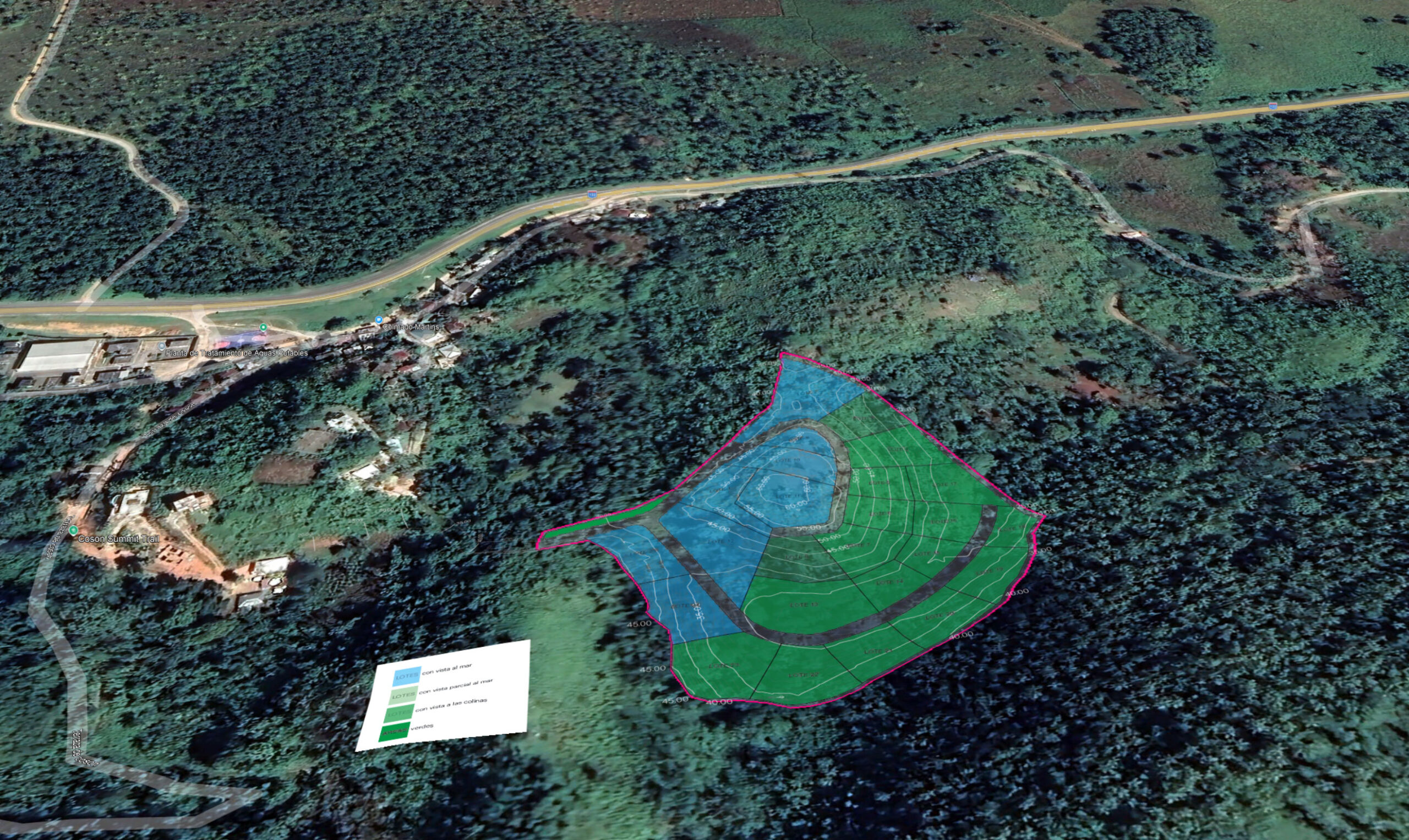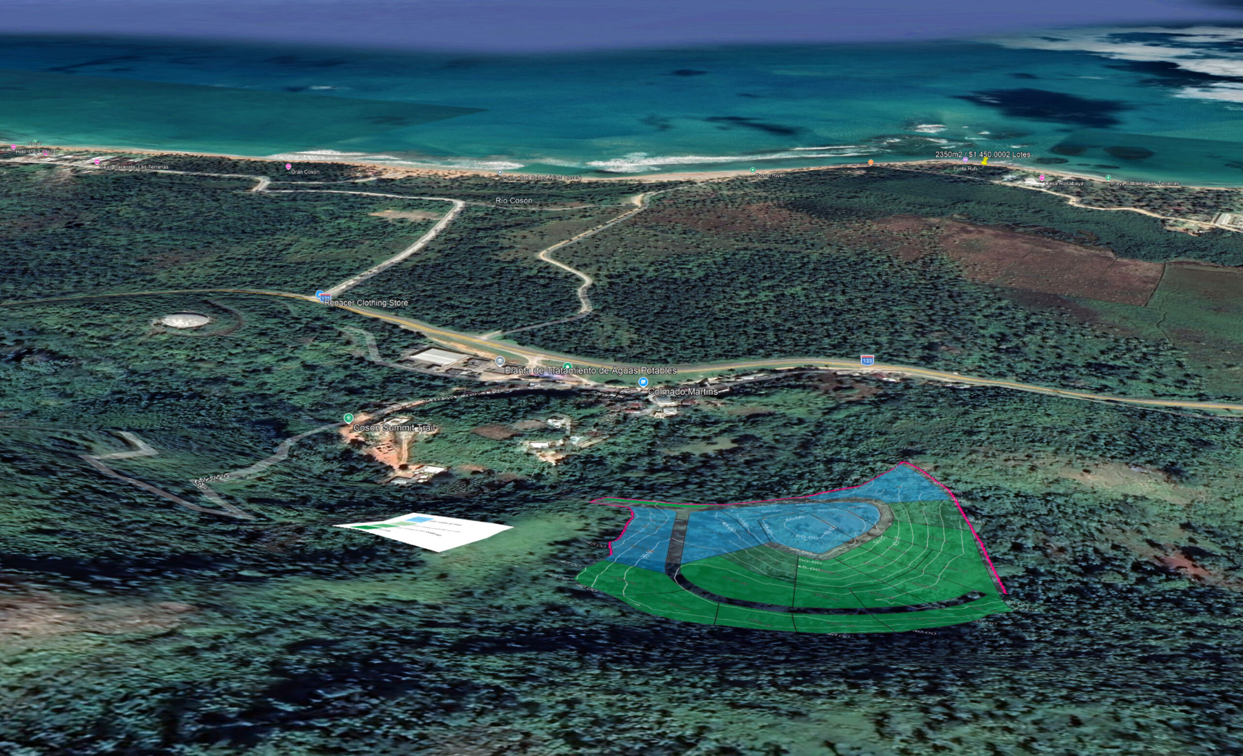 The project has been thoughtfully planned with underground infrastructure, paved internal roads, and essential services already in place—saving time, cost, and complexity for future construction. Surrounded by greenery and cooled by hilltop breezes, the location combines tranquility with quick access to Cosón Beach and downtown Las Terrenas.