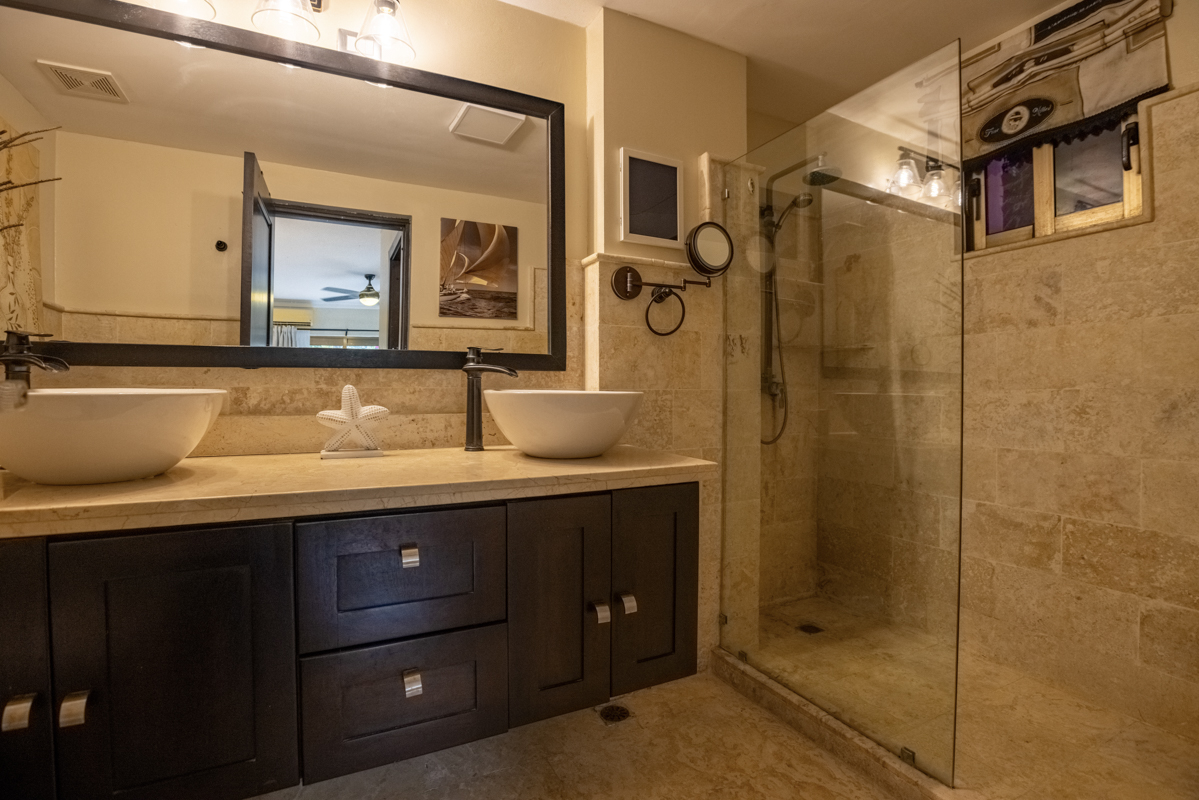 - Contemporary fixtures, stylish sinks, and walk-in showers
