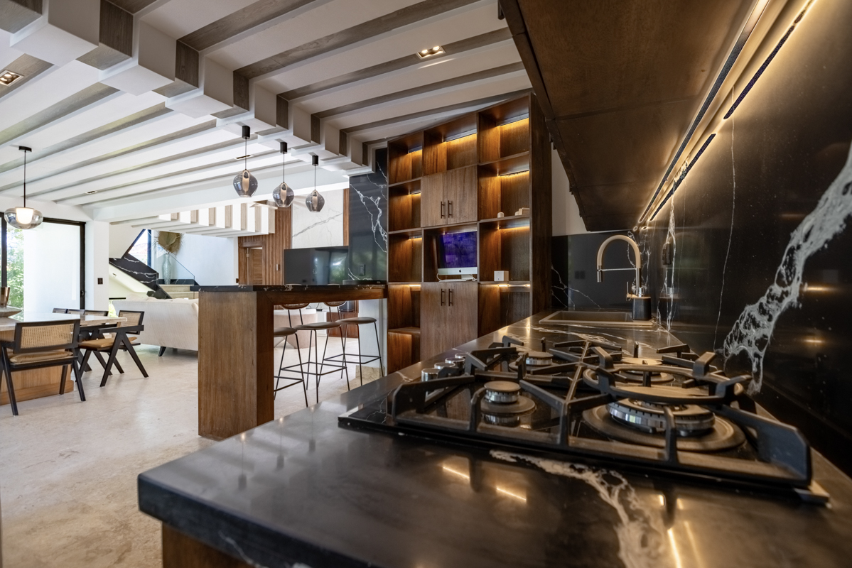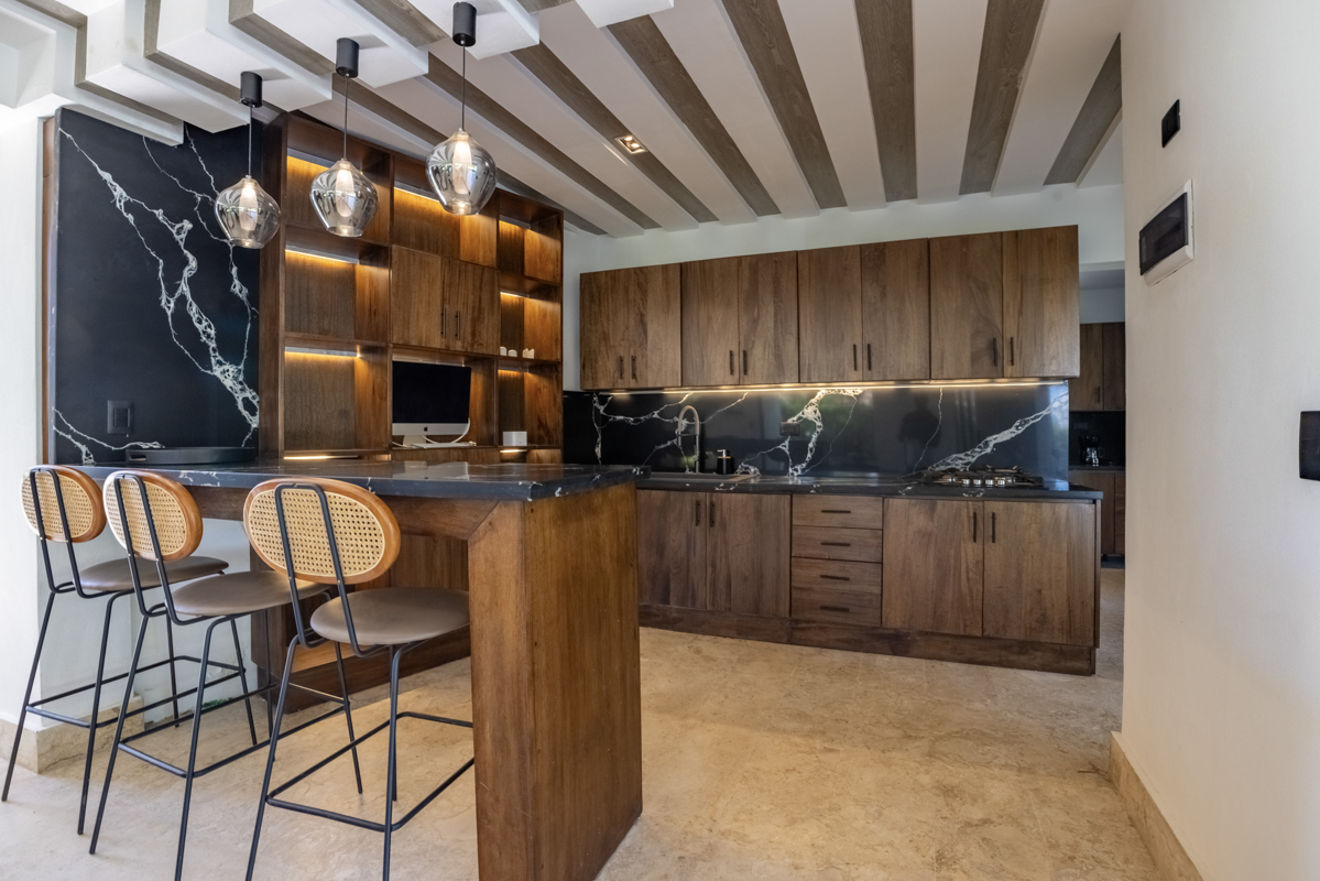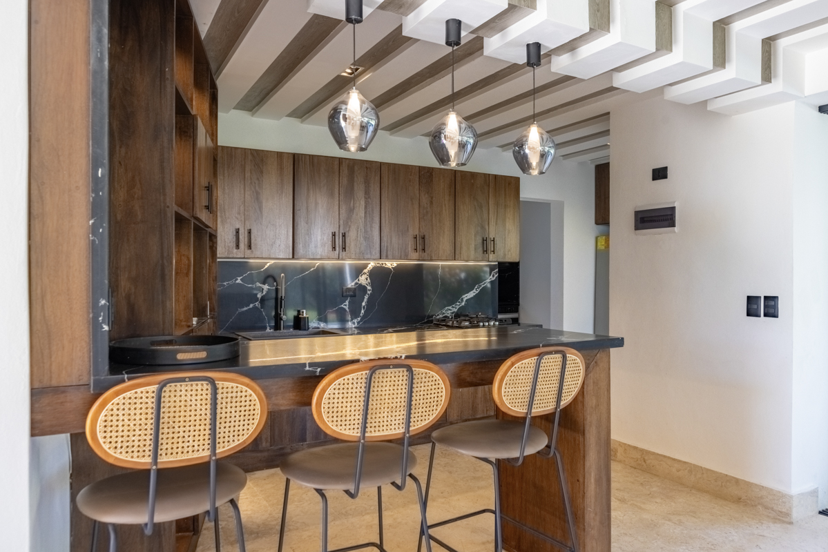 The villa boasts a large, fully equipped kitchen, a private pool for ultimate relaxation, and a charming palapa recreative area—perfect for entertaining or enjoying the tropical breeze.