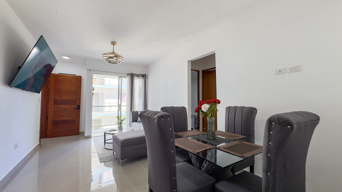 Situated just a 7-minute drive from Sosúa Beach and Playa Alicia, this apartment provides easy access to everything you need. Supermarkets, restaurants, schools, and entertainment options are all nearby. Puerto Plata International Airport is only 7 minutes away, adding convenience for residents and visitors alike.