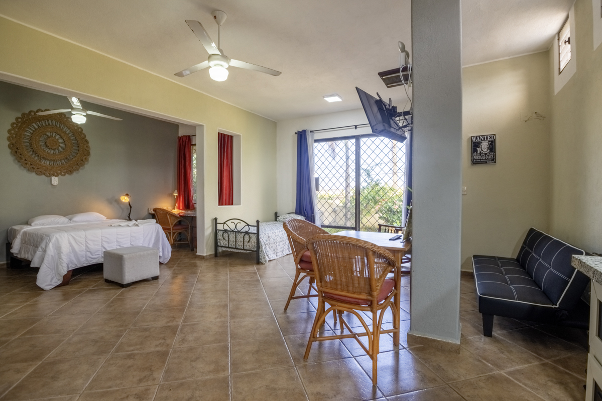 The property is designed to maximize space and flexibility. On the ground floor, you will find four spacious and fully independent studios perfect for long-term or vacation rentals. Each unit offers privacy and comfort, making it attractive for tenants or short-term guests.
